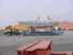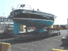 This is a boat that is on what known as a mafi, or roll trailer. It will be placed in a ship on this trailer for Roll-On/Roll-Off Shipment.